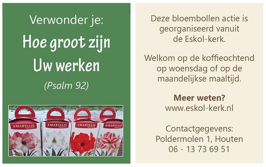 Dit najaar worden er vanuit onze gemeente amaryllis bollen uitgedeeld aan mensen die we hier blij mee kunnen maken. Het kan dus zijn dat u een amaryllis bol van ons ontvangen heeft of nog krijgt! Lees verder…
